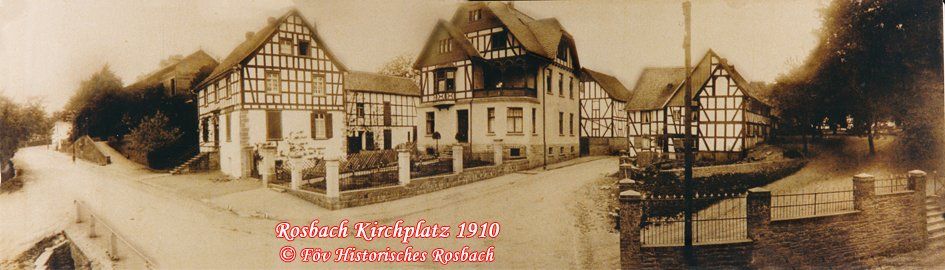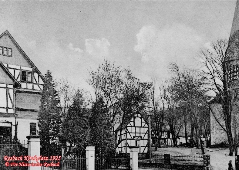 Der zweite Bombenteppich galt dem Ortskern Rosbach. Auch dort war manch einer trotz des Alarms um die Mittagszeit damit beschäftigt, das Mittagessen vorzubereiten, und darauf bedacht, es in den Wohnungen einzunehmen.Rathausstrasse/Markstrasse 30er Jahre