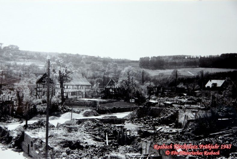 Der Ort Rosbach wurde bis kurz vor dem Ende des 2. Weltkrieges von den eigentlichen Kriegshandlungen weitgehend verschont, und doch glaubte 1945 wohl nur noch eine Minderheit an die großen Worte der Nazi-Führer, die viel zu lange vom „Endsieg“ geredet und noch viele Menschenleben in längst aussichts-loser Situation geopfert hatten.