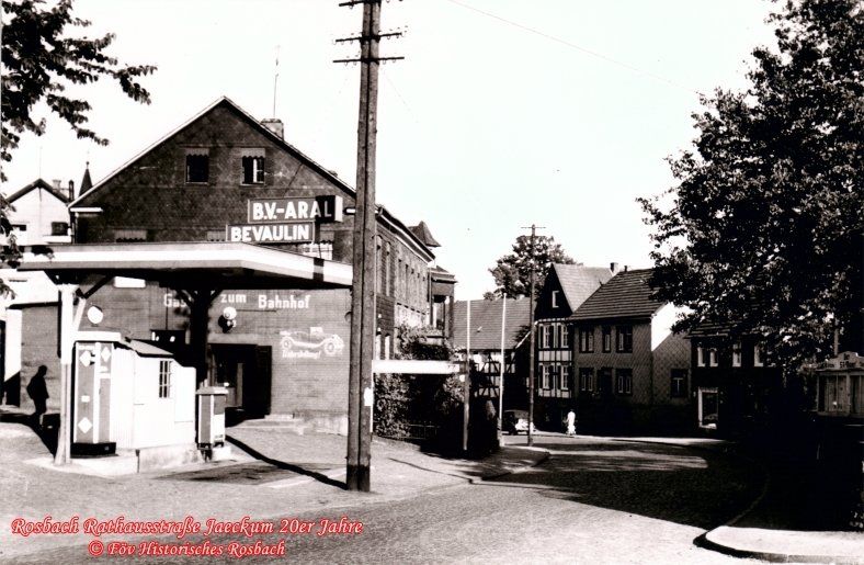 Der "Rosbacher Hof" auf der Ecke zur Kirchstraße verlor die komplette Vorderfront, so dass alle Etagen einstürzten. "Hotel Restaurant zur Bahn", im Besitz der Familie Fritz Jacobs, war schwer getroffen, die links angebaute Seite war ganz zerstört.Das Dach der benachbarten Tankstelle stürzte ein und begrub unter sich den Schüler Heinrich (Heinz) Klarwasser.